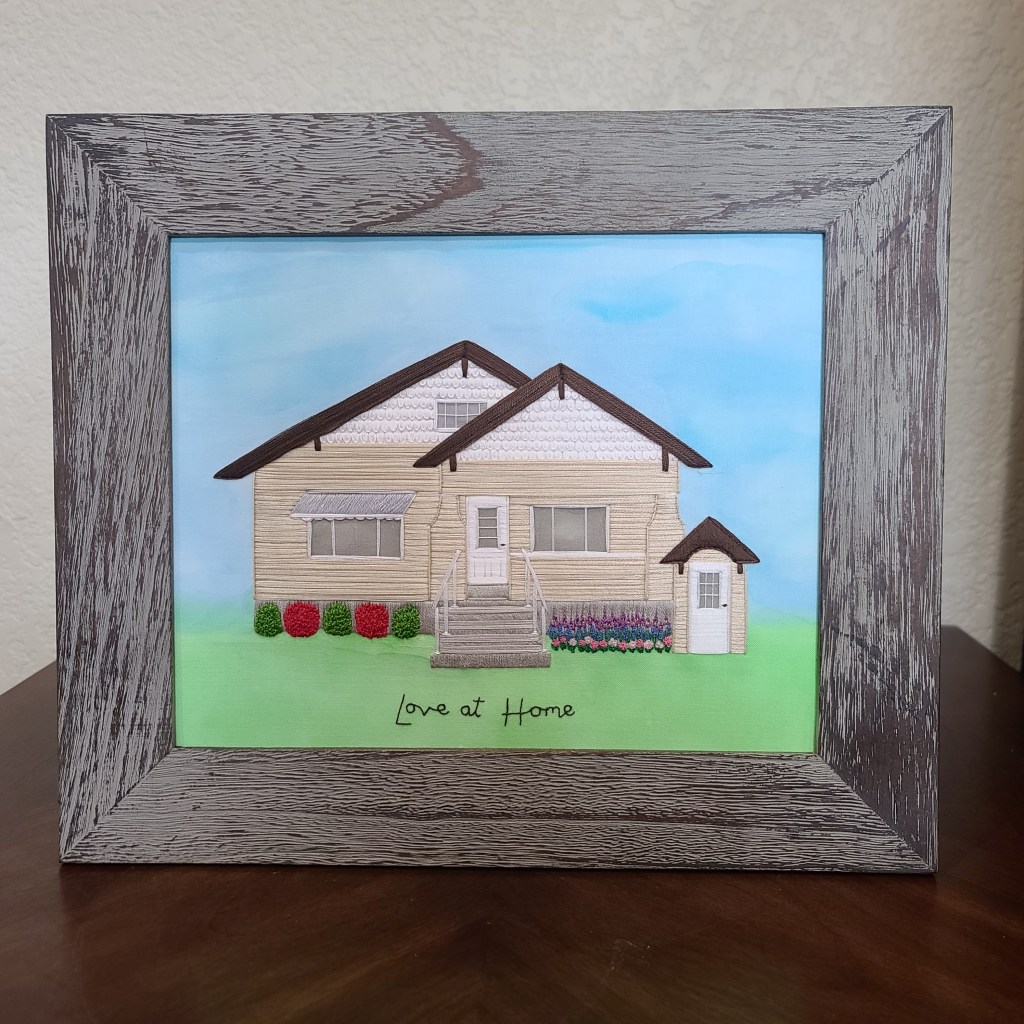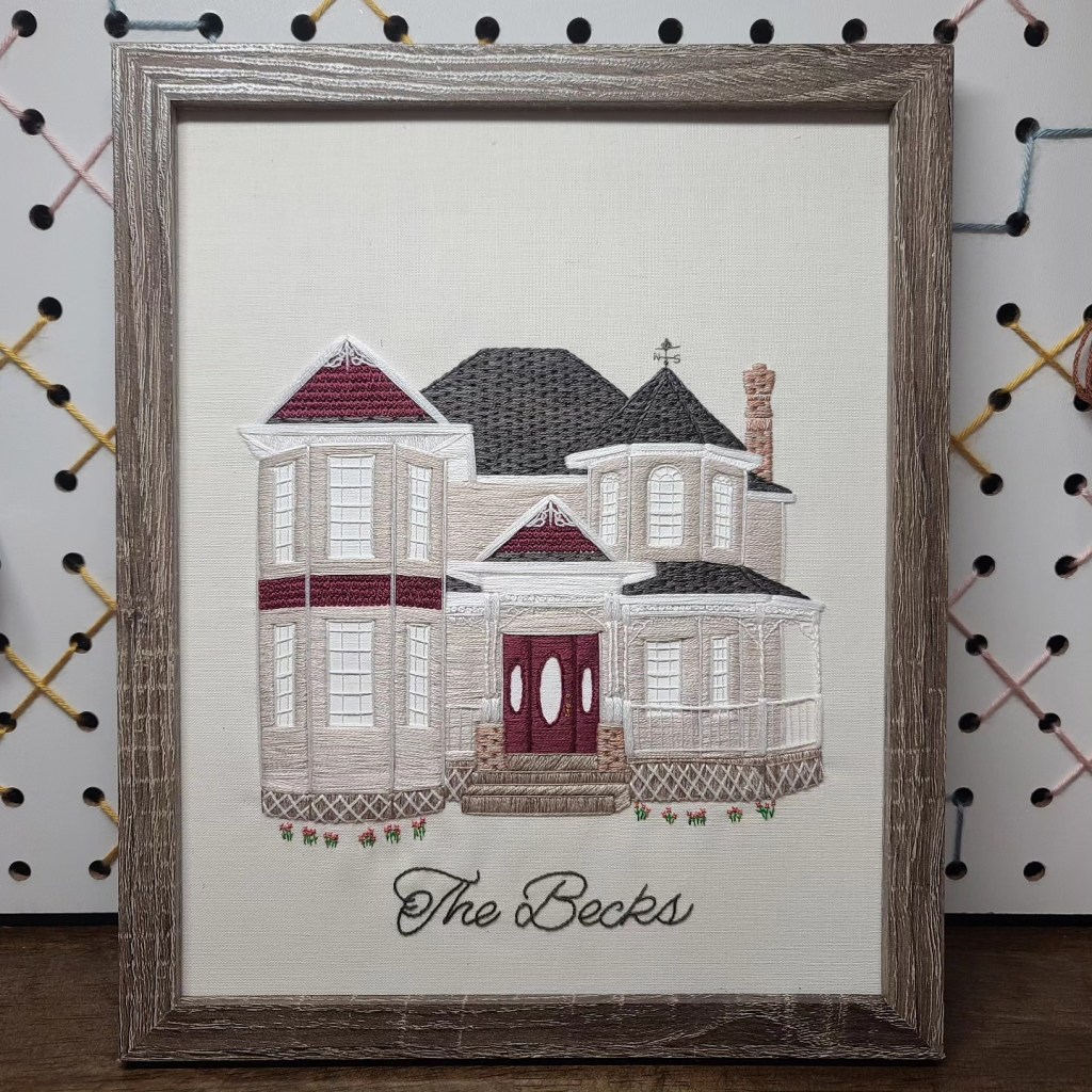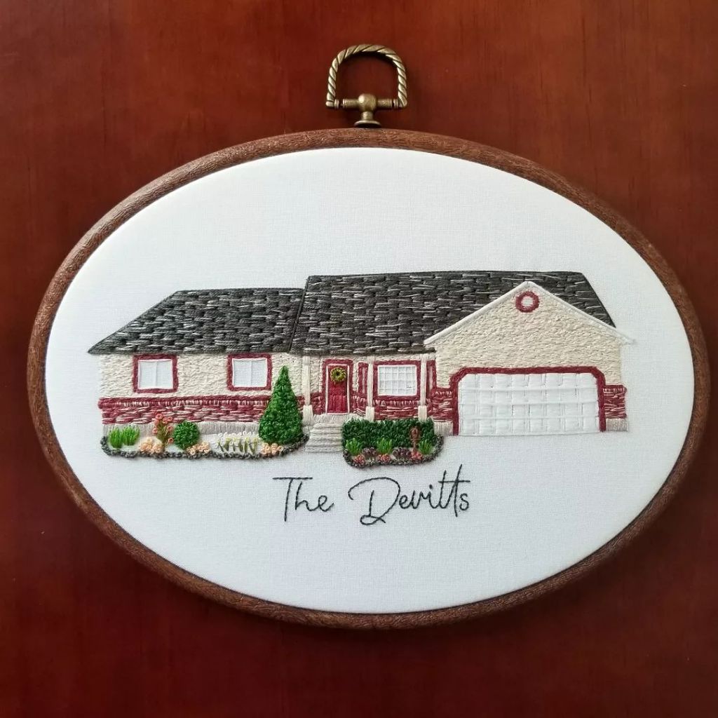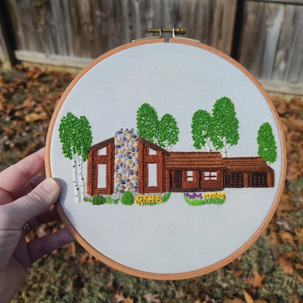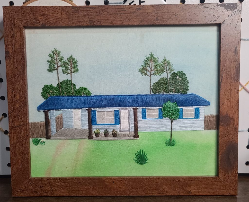 Since then I’ve stitched 12 additional houses. Each portrait has felt so important. I’ve had the privilege of stitching houses for the children and grandchildren of people who have passed away, preserving family homes and generations of memories. I created a portrait of a home that had been their family’s haven for 30 years. When the surrounding land was sold to developers the family was pushed out of their home and forced to leave it behind. Their sadness was tangible and knowing my art immortalized their home in a way they can keep forever fills me with so much gratitude for this hobby that I picked up out of desperation on a random weekday.