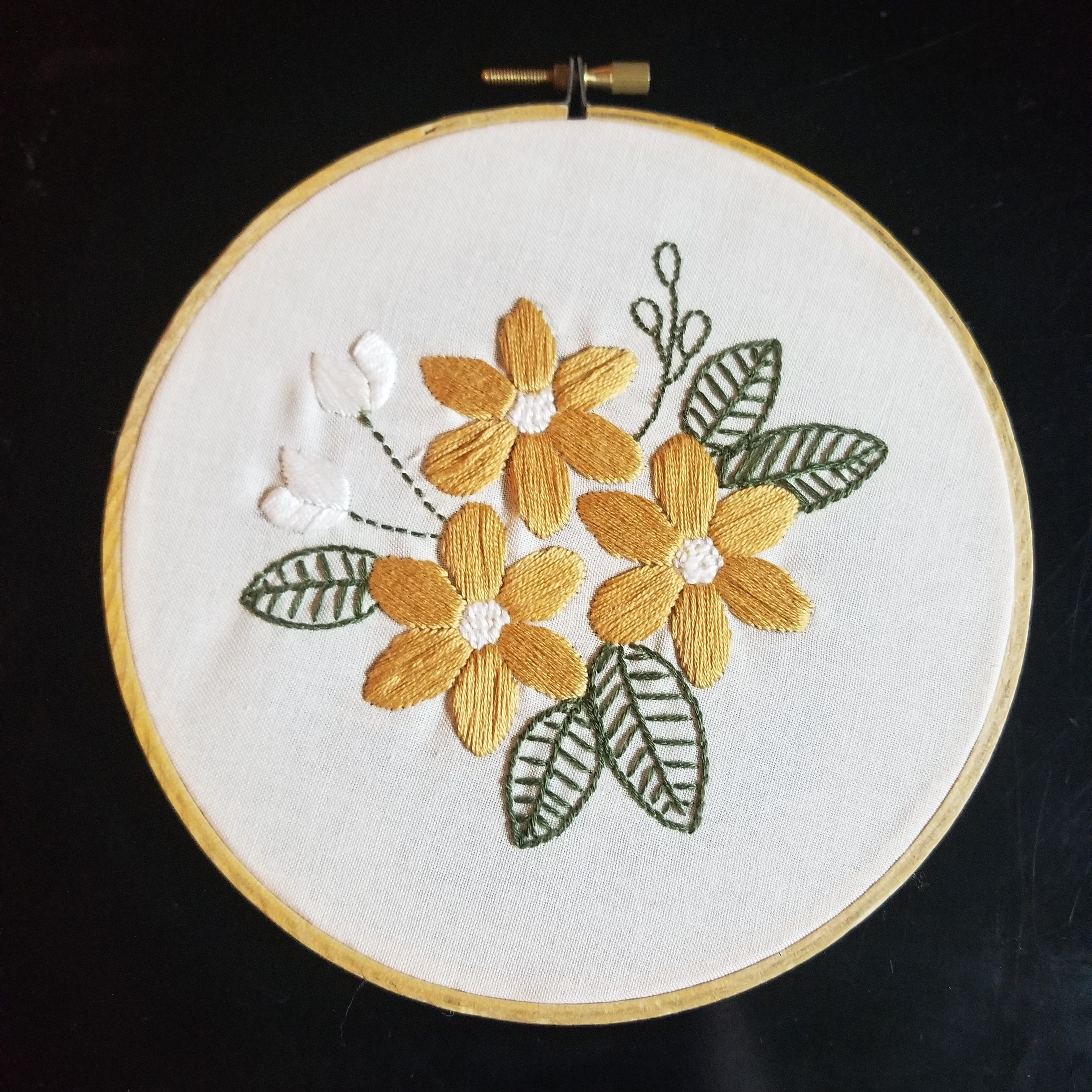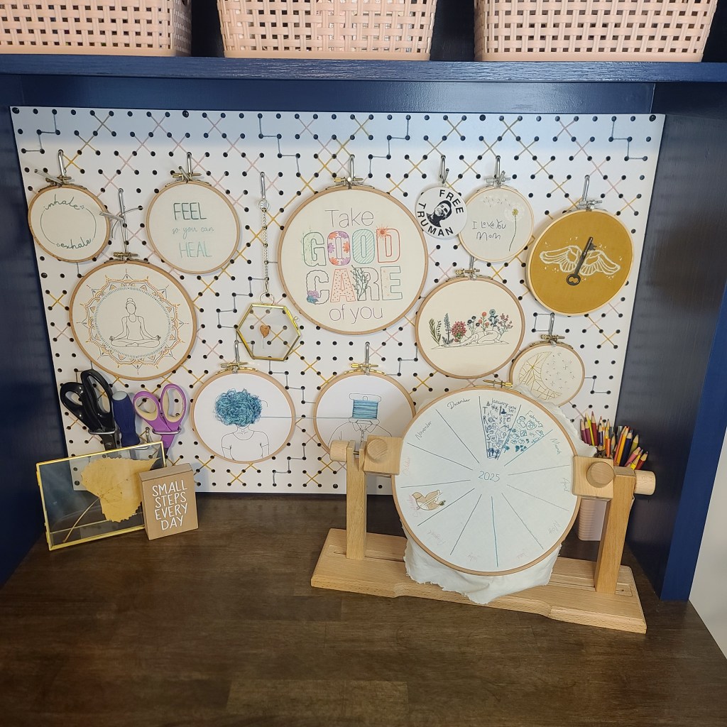 I quickly became obsessed. Buying packs of embroidery floss and hoops off amazon, stitching pattern after pattern, creating my own patterns, stitching on clothes, making gifts, creating hoops for every holiday, and learning new stitches and techniques. I started sharing my work and receiving requests from friends and family for custom hoops. A spark was lit, embroidery was so much fun for me and I couldn’t stop making things! Each completed hoop gave me a tangible sense of accomplishment, a pride in my abilities and fueled the need to create that lies at the core of who I am.